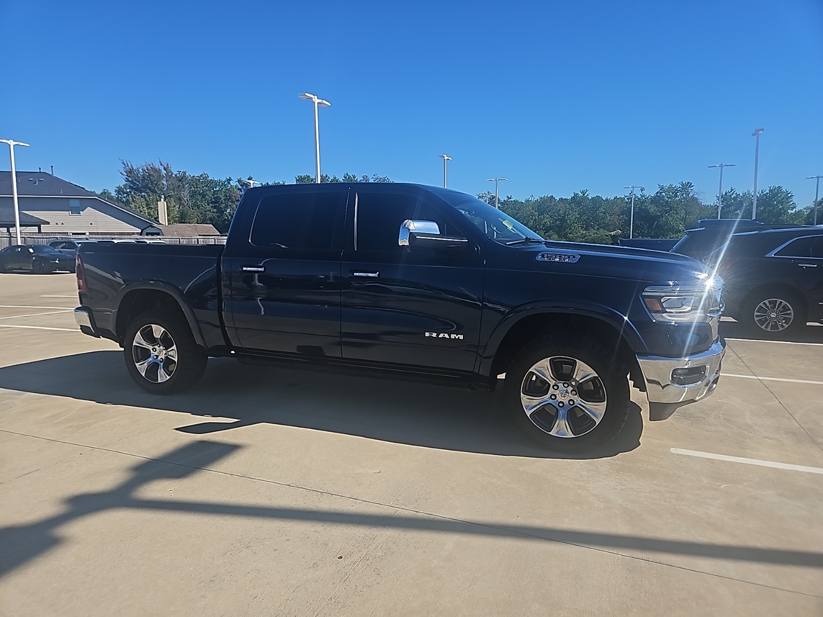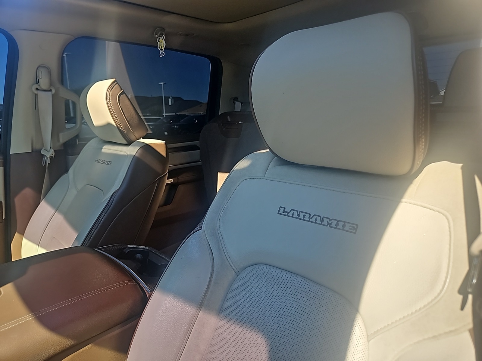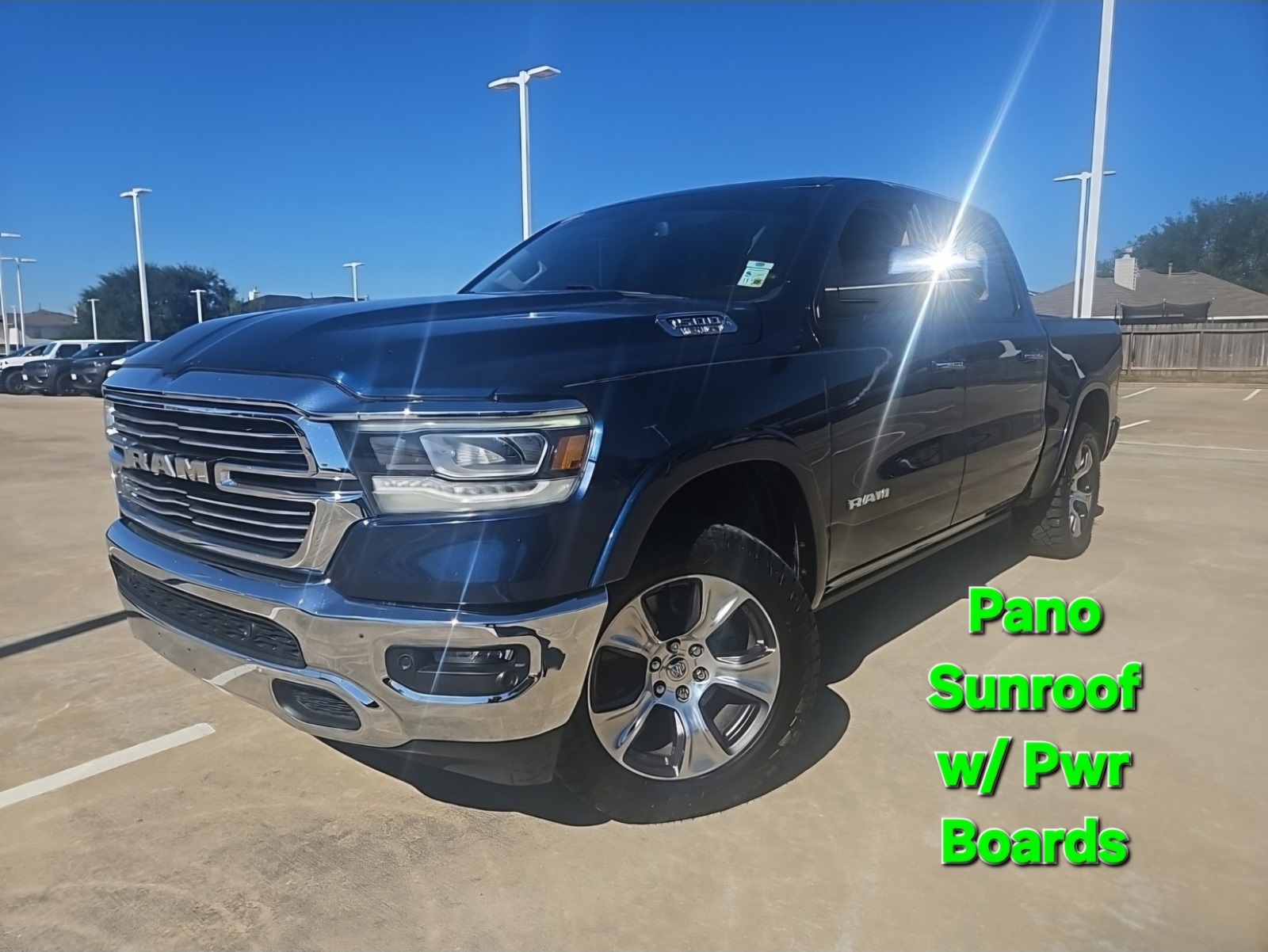 screen Display, Foam Bottle Insert (Door Trim Panel), For Details, Visit DriveUconnect.com, GPS Antenna Input, GPS Navigation, harman/kardon 19 Speaker Premium Sound, HD Radio, Heated Second Row Seats, Integrated Center Stack Radio, No Satellite Coverage w/HI/AK/PR/VI/GU, Radio: Uconnect 4C Nav w/8.4" Display, Rain Sensitive Windshield Wipers, Rear 60/40 Folding Split Recline Seat, Rear Underseat Compartment Storage, Remote Tailgate Release, Single Disc Remote CD Player, SiriusXM Satellite Radio, SiriusXM Traffic Plus, SiriusXM Travel Link, Tailgate Ajar Warning Lamp, and Wireless Charging Pad), Quick Order Package 25H Laramie, Trailer Tow Group (Power Chrome Trailer Tow Mirrors, Trailer Brake Control, and Trailer Tow Mirrors), #1 Seat Foam Cushion, 10 Speakers, 3 Rear Seat Head Restraints, 3.21 Rear Axle Ratio, 4 Way Front Headrests, 4-Wheel Disc Brakes, 48V Belt Starter Generator, ABS brakes, Adjustable pedals, Air Conditioning, Alloy wheels, AM/FM radio: SiriusXM, Apple CarPlay/Android Auto, Audio memory, Auto-dimming door mirrors, Auto-dimming Rear-View mirror, Automatic temperature control, Brake assist, Bumpers: chrome, Compass, Delay-off headlights, Dome Dual LED Reading Lamp, Driver door bin, Driver Seat Memory, Driver vanity mirror, Dual front impact airbags, Dual front side impact airbags, Dual-Pane Panoramic Sunroof, Electronic Stability Control, Front & Rear Rubber Floor Mats, Front anti-roll bar, Front Center Armrest w/Storage, Front dual zone A/C, Front fog lights, Front reading lights, Front Seat Back Map Pockets, Front wheel independent suspension, Fully automatic headlights, Garage door transmitter, Google Android Auto, Heated door mirrors, Heated Front Seats, Heated front seats, Heated Steering Wheel, Heated steering wheel, Illuminated entry, Leather steering wheel, Leather Trim 40/20/40 Bench Seat, LED Dome/Reading Lamp, Low tire pressure warning, Manufacturer's Statement of Origin, Memory seat, Occupant sensing airbag, Outside temperature display, Overhead airbag, Overhead console, Panic alarm, ParkSense Front/Rear Park Assist w/Stop (DISC), ParkView Rear Back-Up Camera, Passenger door bin, Passenger vanity mirror, Pedal memory, Power 4-Way Driver Lumbar Adjust, Power 4-Way Passenger Lumbar Adjust, Power 8-Way Driver & Passenger Seats, Power door mirrors, Power driver seat, Power passenger seat, Power Running Boards, Power steering, Power windows, Radio data system, Radio: Uconnect 4 w/8.4" Display, Rear anti-roll bar, Rear seat center armrest, Rear step bumper, Rear Wheelhouse Liners, Rear window defroster, Remote keyless entry, Security system, Speed control, Split folding rear seat, Steering wheel mounted audio controls, Tachometer, Telescoping steering wheel, Tilt steering wheel, Traction control, Trip computer, Turn signal indicator mirrors, Variably intermittent wipers, Ventilated Front Seats, Ventilated front seats, Voltmeter, Wheels: 18" x 8" Aluminum Base Painted, and Wheels: 20" x 9" Premium Paint/PolisheD. Recent Arrival!