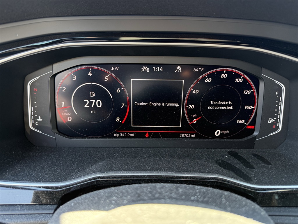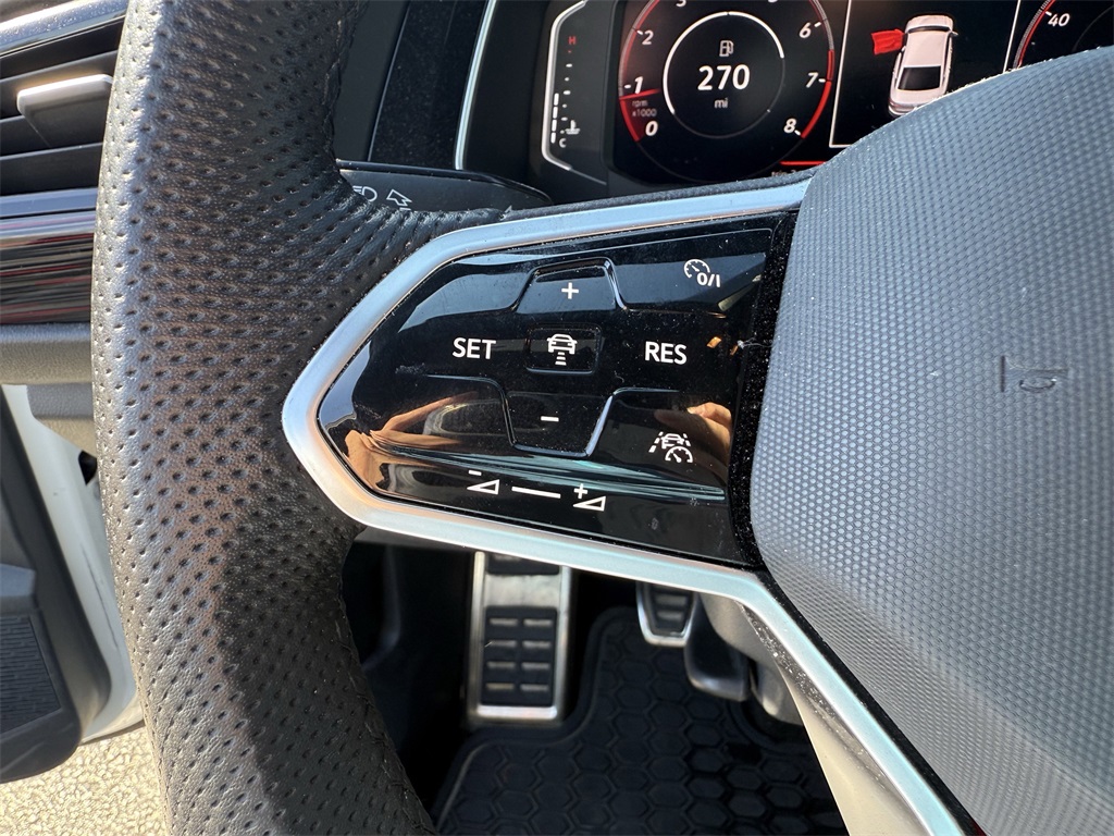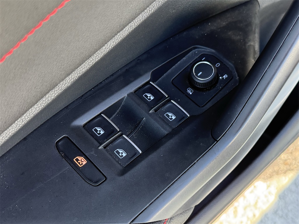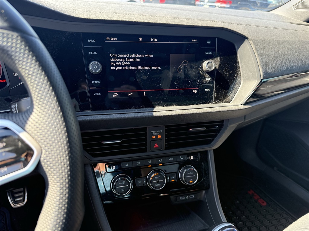 mpers: body-color, Cloth Seating Surfaces, Delay-off headlights, Driver door bin, Driver vanity mirror, Dual front impact airbags, Dual front side impact airbags, Electronic Stability Control, Emergency communication system: VW Car-Net Safe & Secure 5-year, Exterior Parking Camera Rear, Four wheel independent suspension, Front anti-roll bar, Front Bucket Seats, Front Center Armrest, Front dual zone A/C, Front reading lights, Fully automatic headlights, Heated door mirrors, Heated Front Seats, Heated front seats, Illuminated entry, Leather Shift Knob, Leather steering wheel, Low tire pressure warning, Occupant sensing airbag, Outside temperature display, Overhead airbag, Panic alarm, Passenger door bin, Passenger vanity mirror, Power door mirrors, Power steering, Power windows, Radio data system, Radio: MIB3 Composition Media w/8" Touchscreen, Rain sensing wipers, Rear anti-roll bar, Rear reading lights, Rear seat center armrest, Rear window defroster, Remote keyless entry, Security system, Speed control, Speed-sensing steering, Split folding rear seat, Spoiler, Sport steering wheel, Steering wheel mounted audio controls, Tachometer, Telescoping steering wheel, Tilt steering wheel, Traction control, Trip computer, Turn signal indicator mirrors, Variably intermittent wipers, and Wheels: 18" Black Painted Alloy.