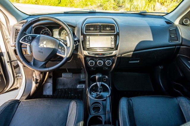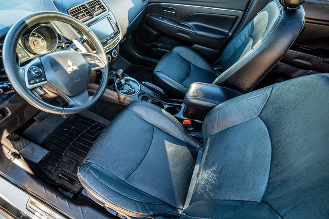Standard features for the ES include heated mirrors, rear privacy glass, keyless entry, air-conditioning, cruise control, a height-adjustable driver seat, 60-40-split-folding rear seats, cloth upholstery, a leather-wrapped tilt-and-telescoping steering wheel, a leather-wrapped shift knob, Mitsubishi's Fuse voice-activated electronics interface, Bluetooth phone and audio connectivity, and a four-speaker audio system with a CD player, an auxiliary audio jack and a USB-iPod .