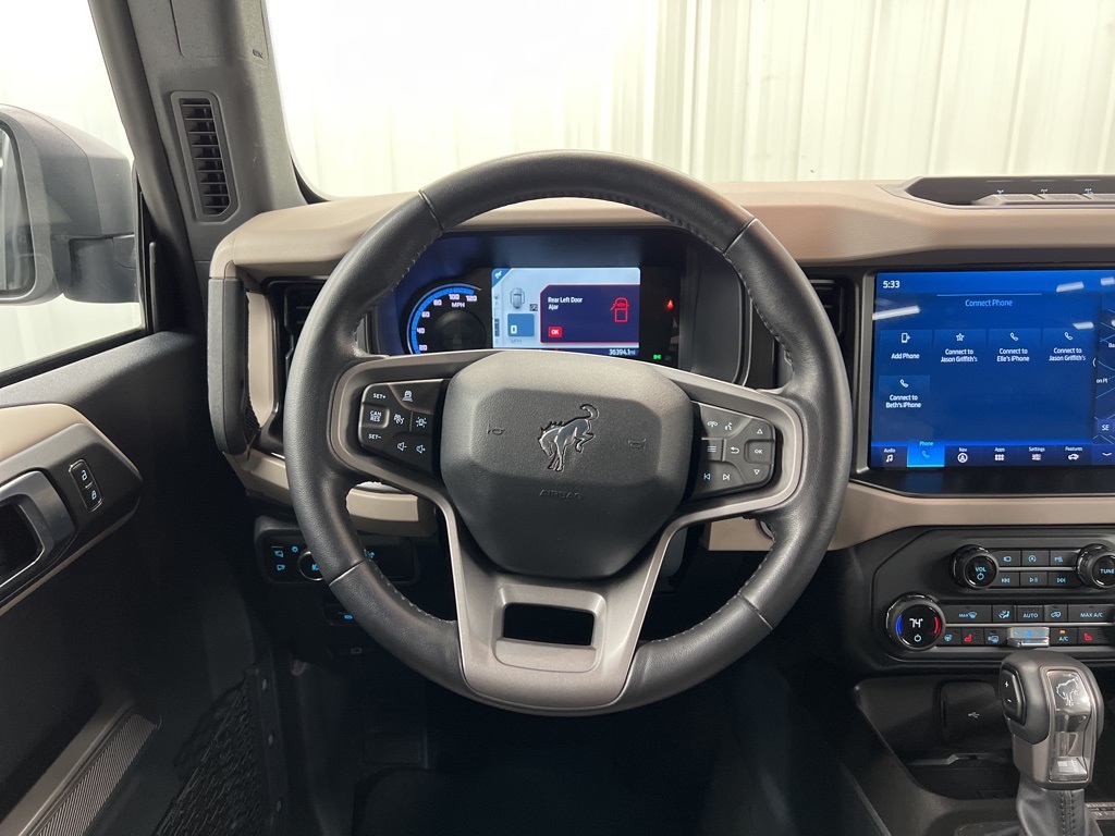 This 2023 Ford Bronco Wildtrak in Carbonized Gray Metallic comes with the following features: 2.7L EcoBoost V6 10-Speed Automatic 4WD Equipment Group 354A Lux Package (10 Speakers w/Subwoofer, 12" LCD Capacitive Touchscreen w/Swipe Capability, 2 Smart Charging USB Ports In Dashboard, 360-Degree Camera, Adaptive Cruise Control, Additional Sound Deadening, Connected Built-In Navigation, Evasive Steering Assist, Front Parking Sensors, Heated Steering Wheel,