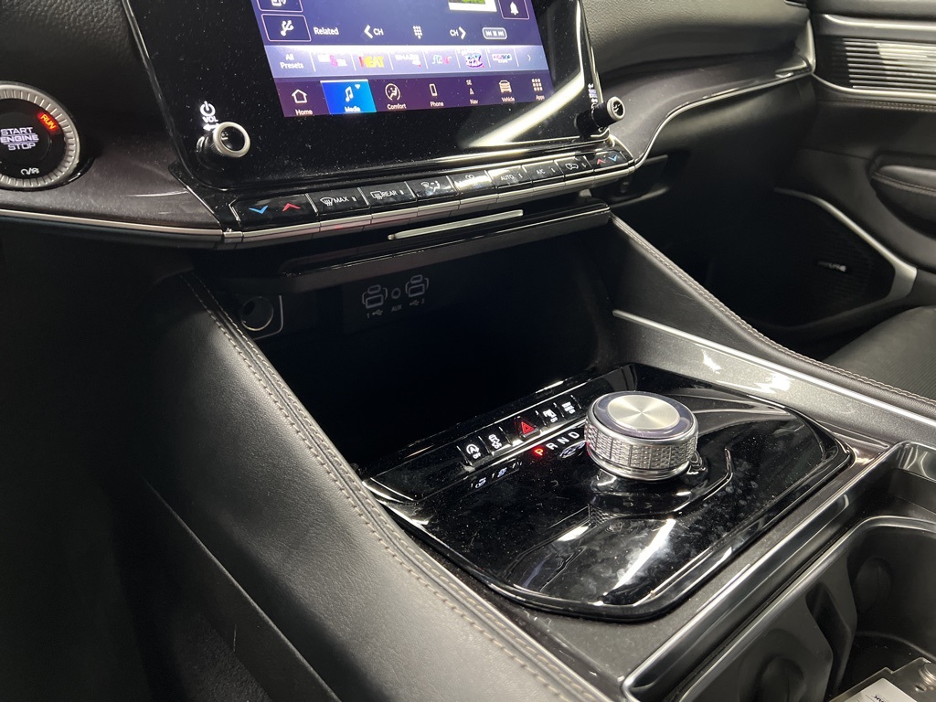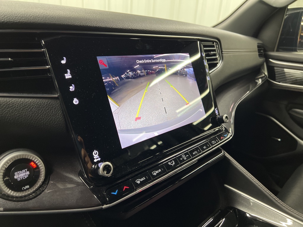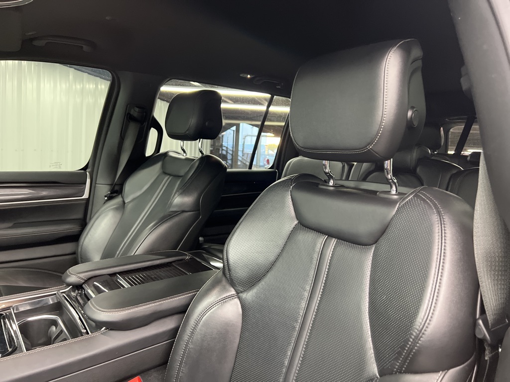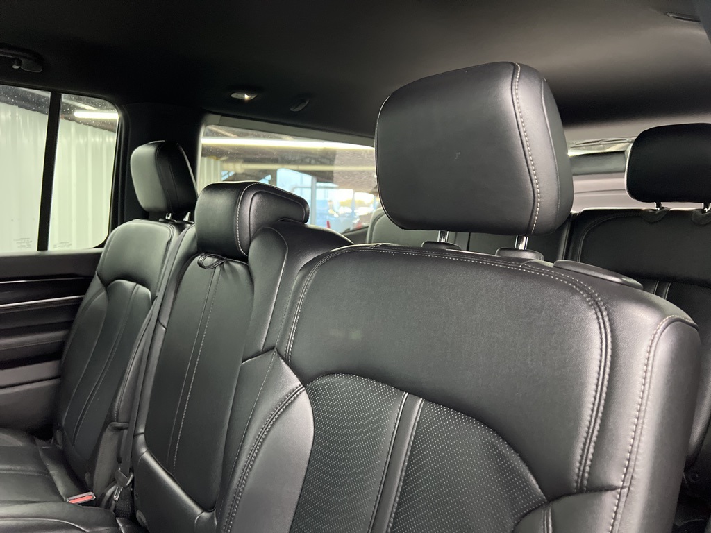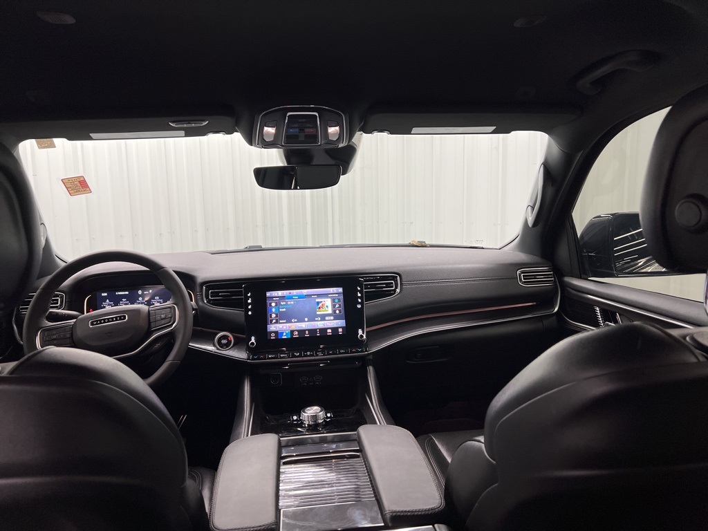 temperature control, Brake assist, Bumpers: body-color, Compass, Delay-off headlights, Driver door bin, Driver vanity mirror, Driver's Seat Mounted Armrest, Dual front impact airbags, Dual front side impact airbags, Electronic Stability Control, Emergency communication system: Wagoneer Connect, Exterior Parking Camera Rear, Four wheel independent suspension, Front anti-roll bar, Front Bucket Seats, Front Center Armrest w/Storage, Front dual zone A/C, Front fog lights, Front reading lights, Fully automatic headlights, Garage door transmitter, Heated door mirrors, Heated front seats, Heated steering wheel, Illuminated entry, Knee airbag, Leather Trimmed Bucket Seats, Low tire pressure warning, Memory seat, Navigation System, Normal Duty Suspension, Occupant sensing airbag, Outside temperature display, Overhead airbag, Overhead console, Panic alarm, Passenger door bin, Passenger seat mounted armrest, Passenger vanity mirror, Pedal memory, Power adjustable front head restraints, Power door mirrors, Power driver seat, Power Liftgate, Power passenger seat, Power steering, Power windows, Radio data system, Radio: Uconnect 5 Nav w/10.1" Display, Rear air conditioning, Rear anti-roll bar, Rear dual zone A/C, Rear reading lights, Rear seat center armrest, Rear window defroster, Rear window wiper, Reclining 3rd row seat, Remote keyless entry, Security system, Speed control, Speed-sensing steering, Speed-Sensitive Wipers, Split folding rear seat, Steering wheel memory, Steering wheel mounted audio controls, Tachometer, Telescoping steering wheel, Tilt steering wheel, Traction control, Trip computer, Turn signal indicator mirrors, Variably intermittent wipers, Ventilated front seats, Voltmeter, and Wheels: 18" x 8.0" Aluminum Base Finish.