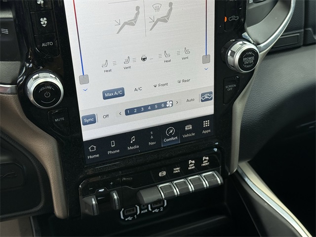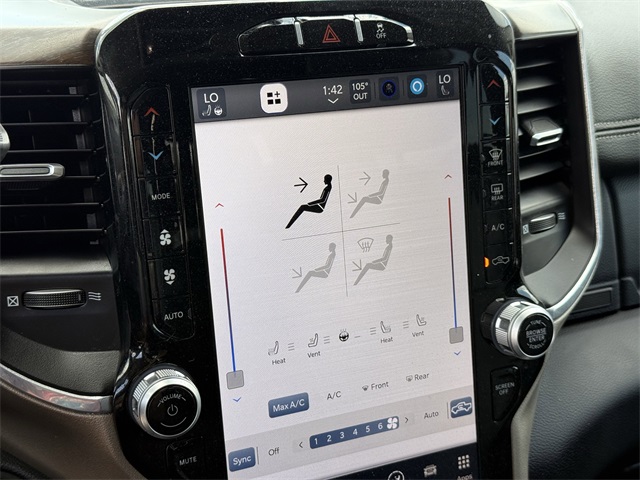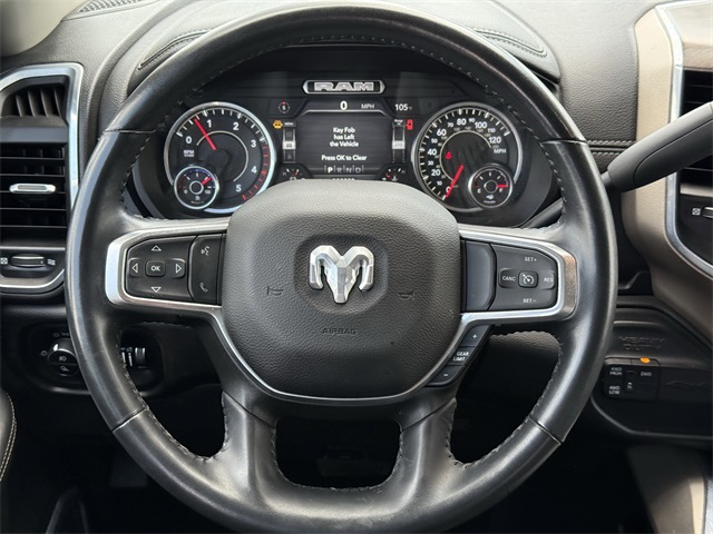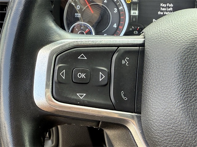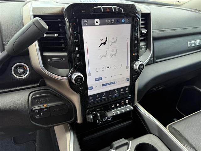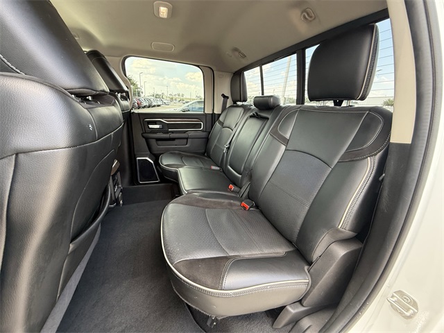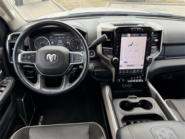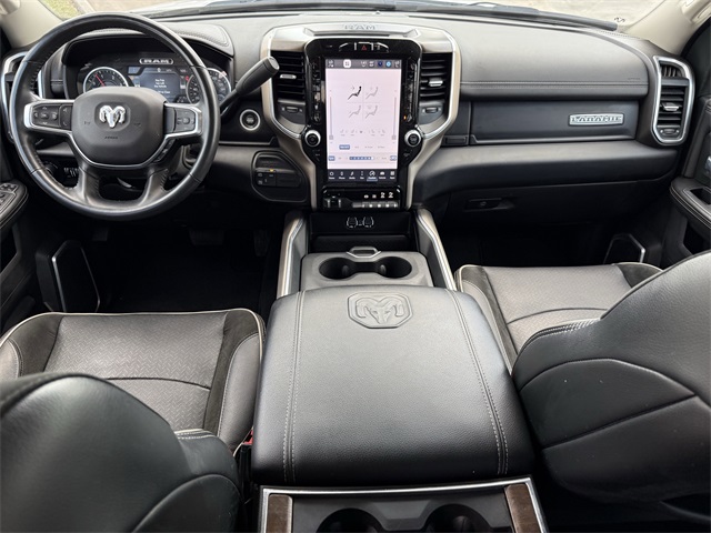 ferential Rear Axle, Apple CarPlay/Android Auto, Auto Adjust In Reverse Exterior Mirrors, Auto Dim Exterior Mirror, Auto High Beam Headlamp Control, Auto Power-Folding Mirrors, Auto-Dimming Exterior Passenger Mirror, Bed Utility Group, Blind Spot & Cross Path Detection, Brake assist, Bumpers: body-color, Center Hub, Chrome Exterior Mirrors, Chrome Flat Wheel-to-Wheel Side Steps, Connected Travel & Traffic Services, Connectivity - US/Canada, Delay-off headlights, Disassociated Touchscreen Display, Driver vanity mirror, Dual front impact airbags, Dual front side impact airbags, Electronic Stability Control, Electronically Controlled Throttle, Engine Block Heater, Exterior Mirrors Courtesy Lamps, Exterior Mirrors w/Heating Element, Exterior Mirrors w/Memory, Exterior Mirrors w/Supplemental Signals, Foam Bottle Insert (Door Trim Panel), For Details, Visit DriveUconnect.com, For More Info, Call 800-643-2112, Forward & Reverse Utility Lights, Front anti-roll bar, Front Center Armrest w/Storage, Front dual zone A/C, Front LED Fog Lamps, Front reading lights, Front Seat Back Map Pockets, Fully automatic headlights, Garage door transmitter, Global Telematics Box Module (TBM), Google Android Auto, GPS Antenna Input, GPS Navigation, HD Radio, Heated door mirrors, Heated Front Seats, Heated front seats, Heated Steering Wheel, Heated steering wheel, Illuminated entry, Integrated Voice Command w/Bluetooth, Laramie Level 1 Equipment Group, Leather steering wheel, Leather Trim 40/20/40 Bench Seat, LED Bed Lighting, LED Reflector Headlamps, LED Tail Lamps, Low tire pressure warning, Mirror Running Lights, MOPAR Deployable Bed Step, MOPAR Front & Rear Rubber Floor Mats, MOPAR Spray In Bedliner, Navigation System, Occupant sensing airbag, Off-Road Information Pages, Outside temperature display, Overhead airbag, Overhead console, Panic alarm, ParkSense Front/Rear Park Assist System, ParkView Rear Back-Up Camera, Passenger door bin, Power 2-Way Driver Lumbar Adjust, Power 2-Way Passenger Lumbar Adjust, Power Adjust 8-Way Driver Seat, Power Adjust 8-Way Front Passenger Seat, Power Adjust Mirrors, Power Adjustable Convex Aux Mirrors, Power Adjustable Pedals w/Memory, Power door mirrors, Power driver seat, Power Heated Fold Telescopic Mirrors w/Memory, Power passenger seat, Power Telescoping Mirrors, Quick Order Package 2HH Laramie, Radio: Uconnect 5 Nav w/12.0" Display, Rain Sensitive Windshield Wipers, Rear 60/40 Folding Seat, Rear anti-roll bar, Rear Power Sliding Window, Rear reading lights, Rear seat center armrest, Rear step bumper, Rear Window Defroster, Remote keyless entry, Remote Tailgate Release, Security system, Selectable Tire Fill Alert, SiriusXM Radio Service, SiriusXM w/360L, Speed control, Split folding rear seat, Steering wheel mounted audio controls, Tachometer, Tilt steering wheel, Tip Start, Tow Hooks, Traction control, Trailer Tow Pages, Trip computer, Turn signal indicator mirrors, Variably intermittent wipers, Voltmeter, Wheels: 18" x 8.0" Polished Aluminum. CARFAX One-Owner. Priced below KBB Fair Purchase Price!