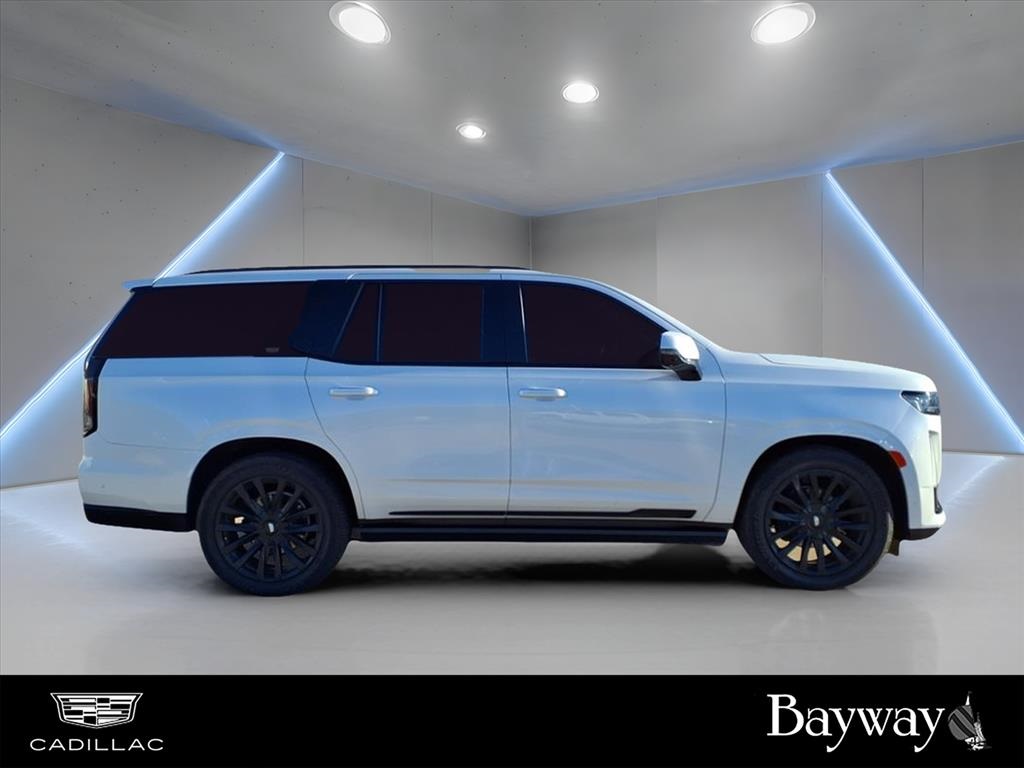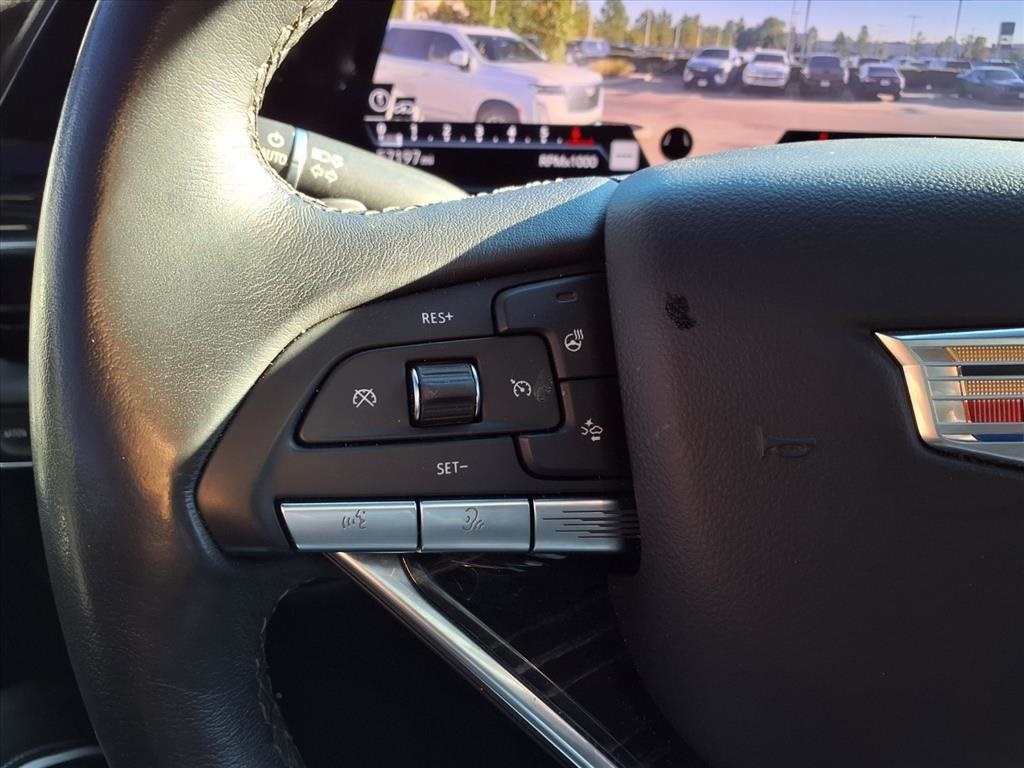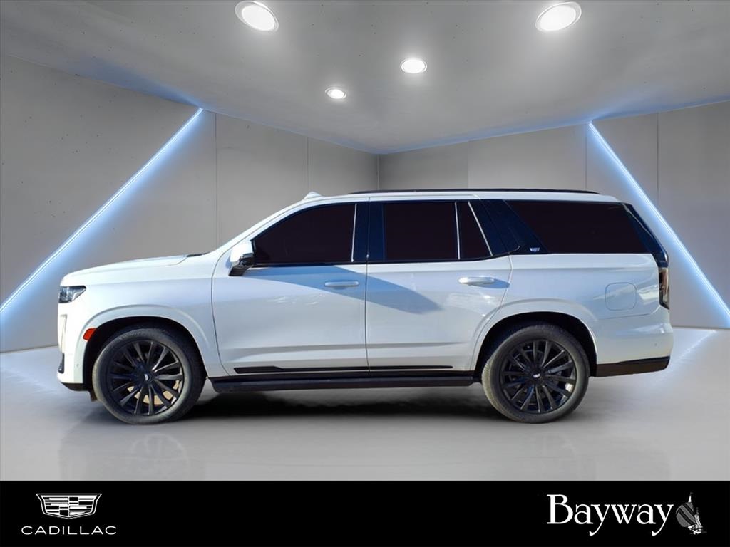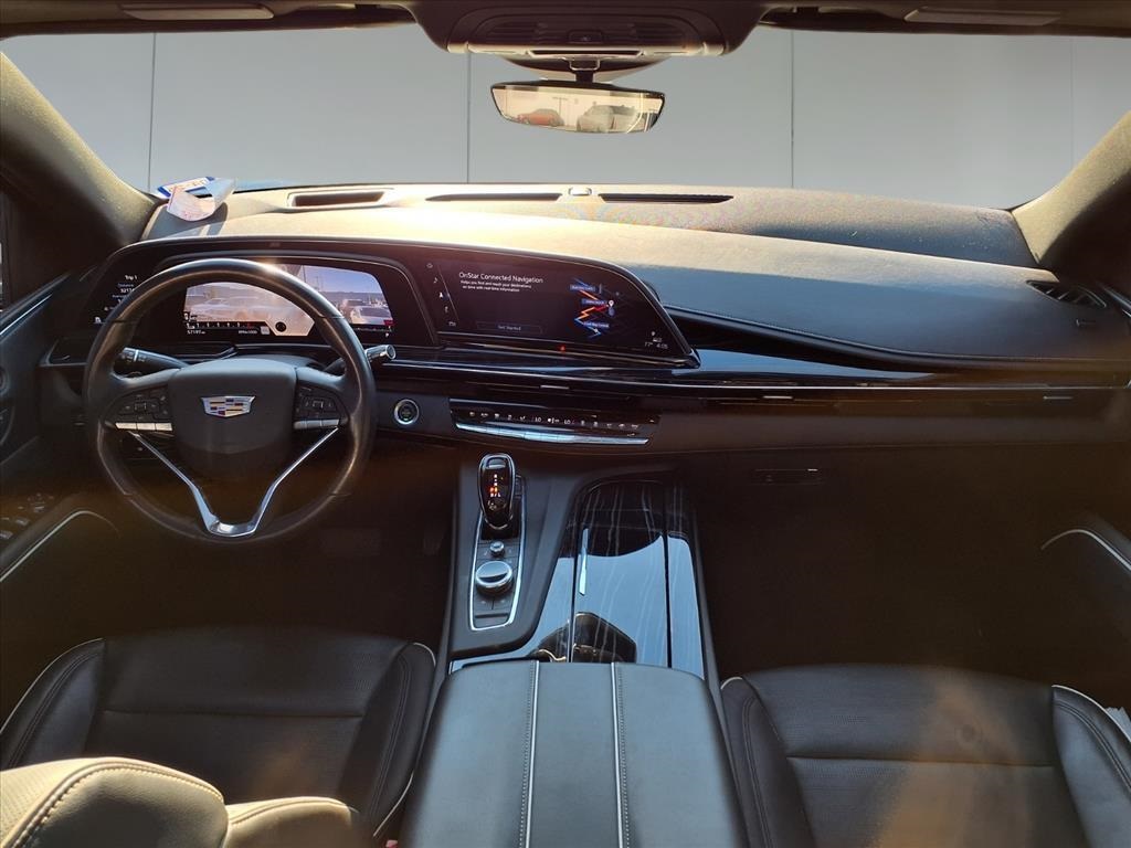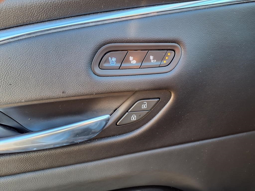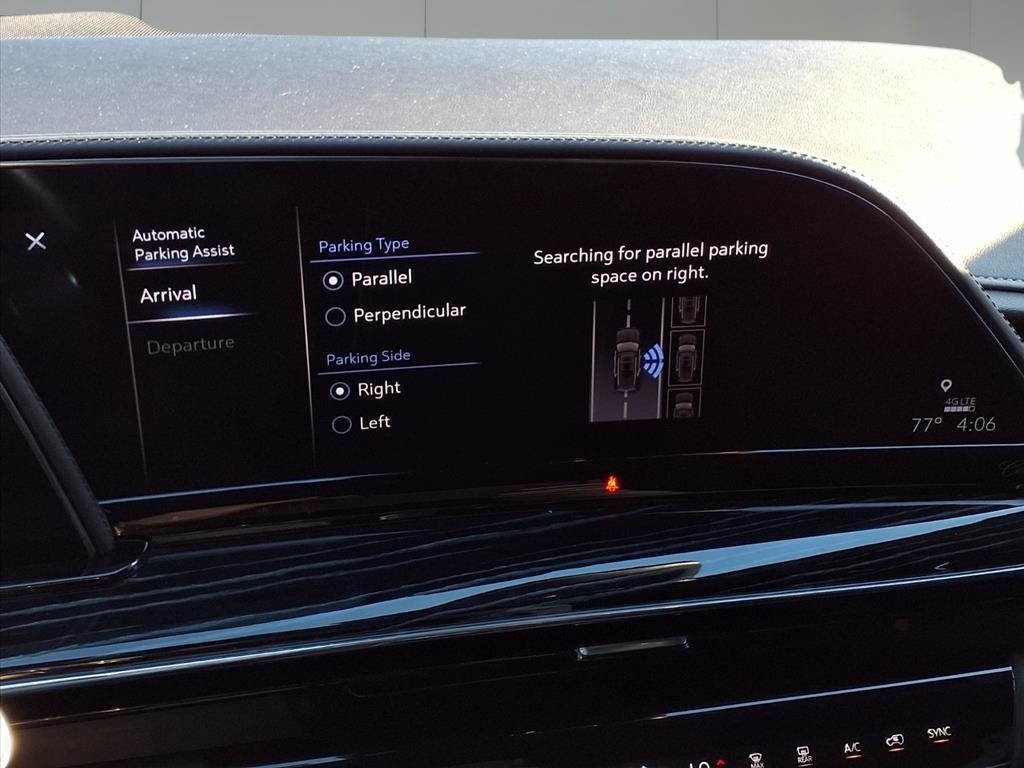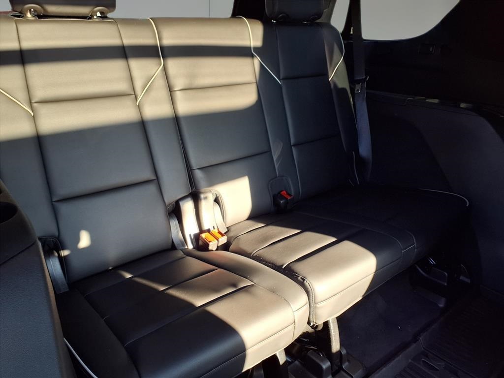 Nameplate (LPO), Monochrome Cadillac Emblems (LPO), Puddle Lamps w/Cadillac Crest (LPO), Wheels: 22" 12-Spoke Gloss Black Alloy (LPO), and Wheels: 22" Interim (LPO)), Preferred Equipment Group 1SC (Air Ionizer, AKG Studio 19-Speaker Audio System, Automatic Emergency Braking, Body-Color Door Handles, Door Lock & Latch Shields, Electronic Cruise Control w/Set & Resume Speed, Electronic Limited-Slip Differential, Enhanced Automatic Parking Assist, Glass Breakage Sensor, Hitch Guidance w/Hitch View, In-Vehicle Trailering System App, Integrated Trailer Brake Controller, Lane Keep Assist w/Lane Departure Warning, Power Panoramic Tilt-Sliding Sunroof, Rear Camera Mirror, Rear Camera Mirror Washer, Rear Cross Traffic Alert, Reconfigurable Full-Color Head-Up Display, Running Board Assist Steps, Theft-Deterrent Alarm System, Trailer Side Blind Zone Alert, Vehicle Inclination Sensor, and Vehicle Interior Movement Sensor), Cadillac Certified Pre-Owned Certified, Black Leather, 16.9" Diagonal OLED Infotainment Screen, 19 Speakers, 2-Presets Memory For Driver Seat Adjuster, 3.23 Axle Ratio, 3rd row seats: split-bench, 4-Way Power Driver Lumbar Seat Adjuster, 4-Way Power Front Passenger Lumbar Seat Adjuster, 4-Wheel Disc Brakes, 8-Way Power Driver Seat Adjuster, 8-Way Power Front Passenger Seat Adjuster, ABS brakes, Adaptive suspension, Air Conditioning, Alloy wheels, AM/FM radio: SiriusXM with 360L, Apple CarPlay/Android Auto, Audio memory, Auto High-beam Headlights, Auto tilt-away steering wheel, Auto-dimming door mirrors, Auto-dimming Rear-View mirror, Automatic temperature control, Brake assist, Bumpers: body-color, Compass, Delay-off headlights, Driver door bin, Driver vanity mirror, Dual front impact airbags, Dual front side impact airbags, Electronic Stability Control, Emergency communication system: OnStar and Cadillac connected services capable, Four wheel independent suspension, Front anti-roll bar, Front Bucket Seats, Front Center Armrest w/Storage, Front dual zone A/C, Front License Plate Bracket, Front reading lights, Fully automatic headlights, Garage door transmitter, HD Radio, Heads-Up Display, Heated & Ventilated Driver & Front Passenger Seats, Heated door mirrors, Heated Driver & Front Passenger Seats, Heated front seats, Heated rear seats, Heated steering wheel, Illuminated entry, Leather Seating Surfaces w/Precision Perf Inserts, Leather steering wheel, Low tire pressure warning, Magnetic Ride Control Suspension, Memory seat, Navigation System, Occupant sensing airbag, Outside temperature display, Overhead airbag, Overhead console, Panic alarm, Passenger door bin, Passenger vanity mirror, Power door mirrors, Power driver seat, Power Liftgate, Power moonroof, Power passenger seat, Power steering, Power windows, Power-Retractable Assist Steps, Radio data system, Radio: AM/FM/SiriusXM w/Navigation, Rain sensing wipers, Rear air conditioning, Rear anti-roll bar, Rear reading lights, Rear Seat Entertainment System, Rear window defroster, Rear window wiper, Remote keyless entry, Roof rack: rails only, Security system, SiriusXM w/360L, Speed control, Split folding rear seat, Spoiler, Steering wheel memory, Steering wheel mounted audio controls, Tachometer, Teen Driver, Telescoping steering wheel, Tilt steering wheel, Traction control, Trip computer, Turn signal indicator mirrors, Variably intermittent wipers, Ventilated front seats, Voltmeter, Wheels: 22" 12-Spoke Polished Alloy, and Wireless Apple CarPlay/Wireless Android Auto. Recent A